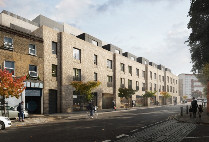 The project for Hackney Borough Council comprised a new mixed-use development fronting onto Manor Road in Stoke Newington. The scheme sits on a complex site, bordered by railway lines to the north, the Manor Road Parade to the south and a Grade II listed Victorian Villa to the east.