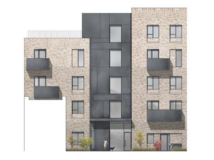 The building is designed with commercial space at ground floor providing an active frontage to Manor Road while thirty-five residential units are located above and behind. These comprise 1, 2 and 3-bedroom apartments including duplex and triplex units.